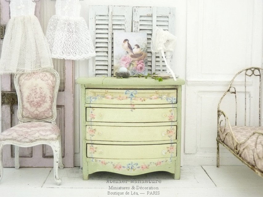 Brocante chic miniature, Maison de poupée, Style français, Fait-main à l'échelle 1/12, par Léa