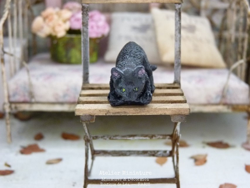 Chat Noir en Résine, Maison de Poupée à l'échelle 1/12