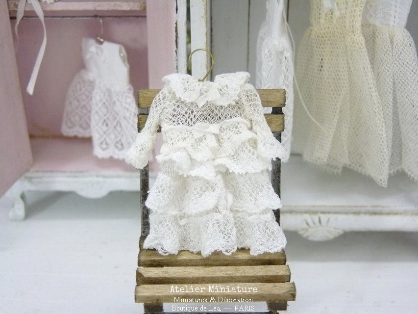 Robe Blanche Romantique Miniature, Échelle 1/12