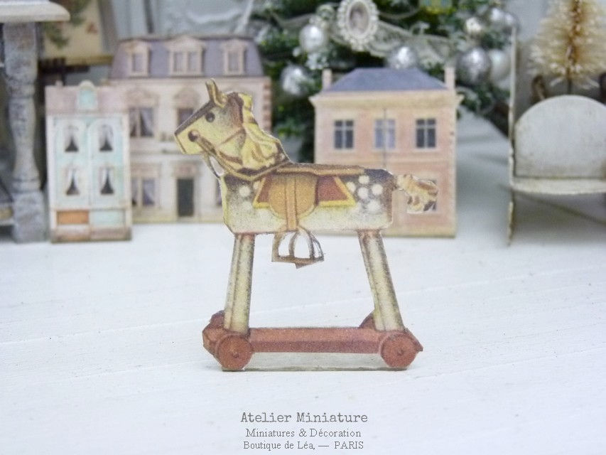 Cheval de Bois à Roulettes en Papier Découpé, Jouet de Maison de Poupée