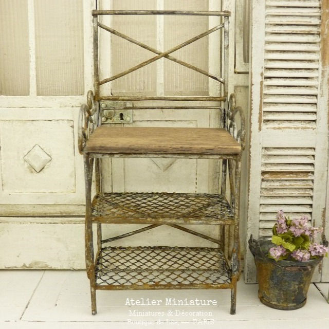 Étagère Miniature en Bois et Métal Rouillé, Maison de Poupée, 1/12